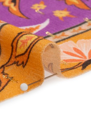 Mood Exclusive Purple Floral Facade Metallic Dotted Crinkled Viscose Crepe Panel