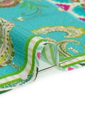Mood Exclusive Green Floral Facade Metallic Dotted Crinkled Viscose Crepe Panel