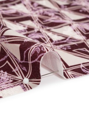 Stretch Flowers and Cranes Jacquard Print – Burgundy and White Triangles – Mood Exclusive Take Flight