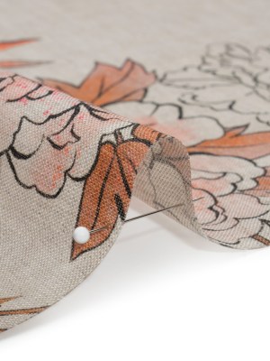 Oatmeal and Coral Fading Bouquet Medium Weight Linen Woven