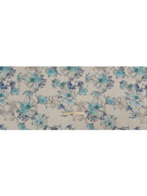 Oatmeal and Blue Fading Bouquet Medium Weight Linen Woven