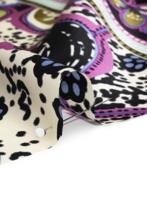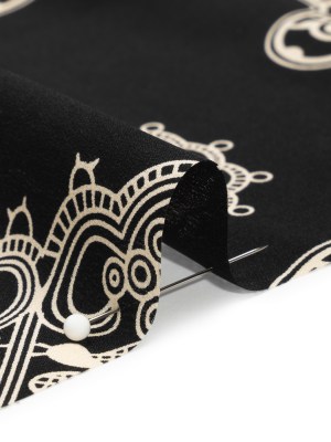Black and Cream Eye Medallions Border Print Silk Crepe de Chine