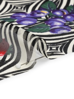 Black, White, and Green Op Art Fruits Silk Chiffon