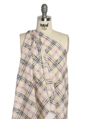 Oatmeal, Pale Yellow and Baby Blue Plaid Lightweight Linen Woven