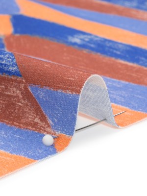 Stretch Cotton Twill Print – Blue and Orange Geometric – Mood Exclusive Checkerboard Chalk