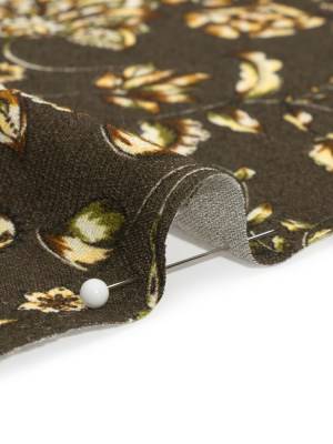 Gauzy Viscose Crepe Print – Charcoal, Green and Brown Jacobean Floral – Mood Exclusive Wooded Wonders