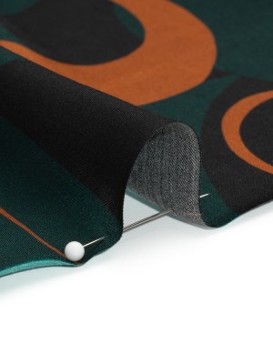 Sustainable and Recycled Viscose Satin Print – Forest Green and Orange Swirling Abstract – Mood Exclusive Atmospheric Adventure