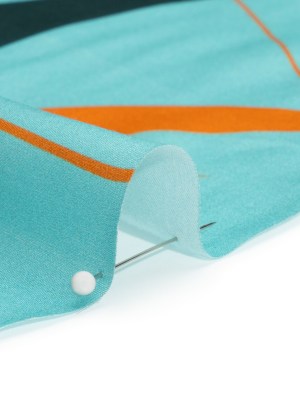 Sustainable and Recycled Viscose Satin Print – Turquoise and Orange Swirling Abstract – Mood Exclusive Atmospheric Adventure