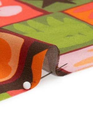 Sustainable and Recycled Viscose Satin Print – Orange, Green and Coral Simple Symbols Patchwork – Mood Exclusive Come Together