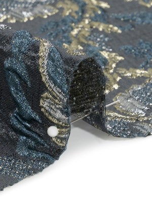 Metallic Navy, Black and Gray Rose Field Luxury Brocade