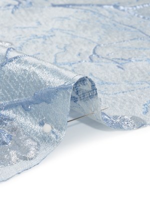 Metallic Baby Blue and Silver Flower Clippings Luxury Brocade