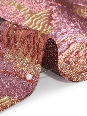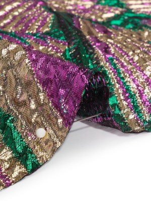 Metallic Gold, Fuchsia and Green Radiating Lines Luxury Brocade