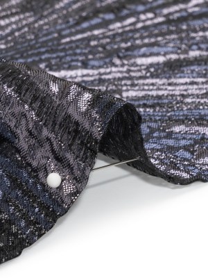 Metallic Gunmetal, Black and Navy Radiating Lines Luxury Brocade