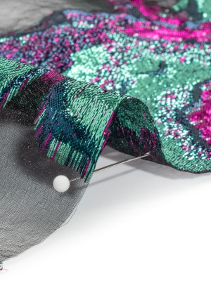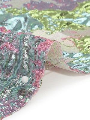Metallic Green, Sky Blue and Pink Garden of Abstraction Luxury Brocade