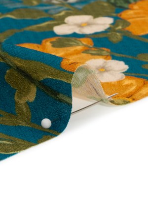 Sustainable Viscose Floral Jacquard Print – Blue, Green and Golden Orange Floral – Mood Exclusive Beautiful Day