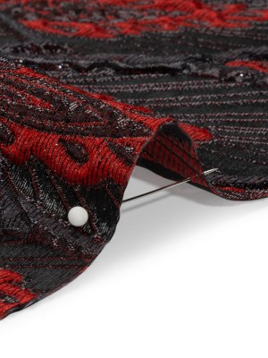 Metallic Black and Red Decorated Feathers Luxury Brocade