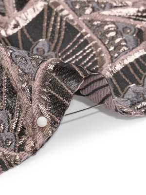 Metallic Dusty Rose, Silver and Black Decorated Feathers Luxury Brocade