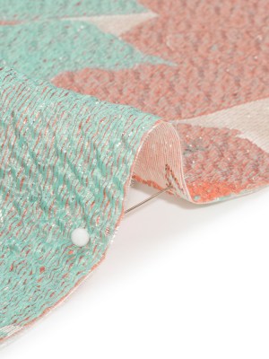 Metallic Silver, Coral and Turquoise Floating Blossoms Luxury Brocade