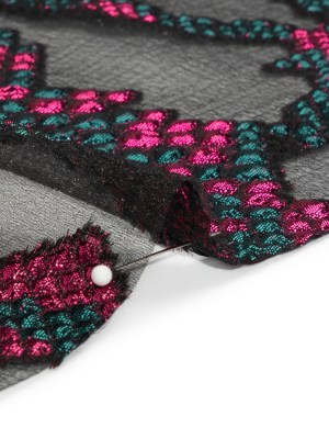 Metallic Fuchsia, Teal and Black Snakeskin Sprawl Burnout Luxury Brocade