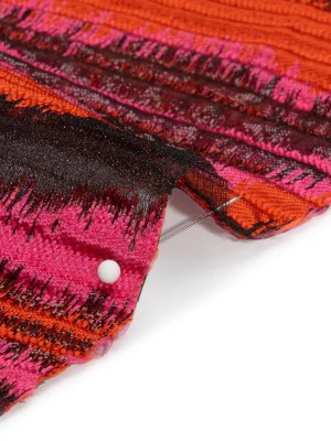 Metallic Red, Pink and Black Abstract Islands Ribbed Burnout Luxury Brocade