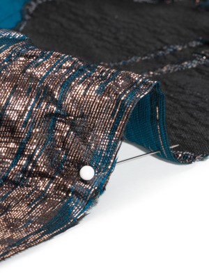 Metallic Copper, Teal and Black Abstract Islands Ribbed Burnout Luxury Brocade