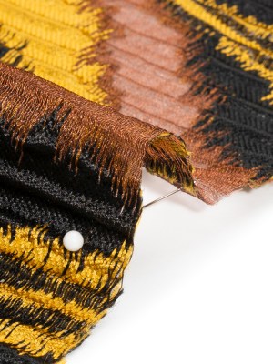 Metallic Brown, Mustard and Black Abstract Islands Ribbed Burnout Luxury Brocade
