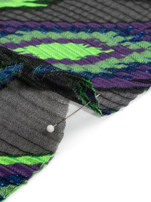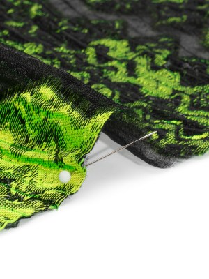Metallic Black and Lime Green Drifting Rifts Crinkled Luxury Burnout Brocade