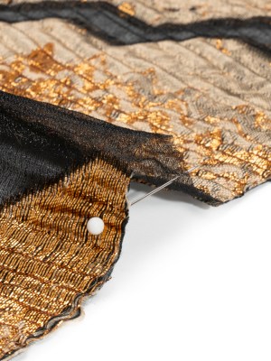 Metallic Gold, Taupe and Black Drifting Rifts Crinkled Luxury Burnout Brocade