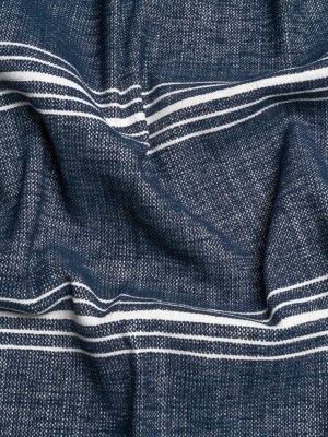 Crypton Indigo on White Striped Stain Resistant Polyester and Linen Chenille Upholstery Woven