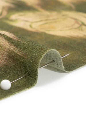 Sustainable Viscose Crepe Print – Olive Green and Beige Ikat Floral – Mood Exclusive Harvest Moon