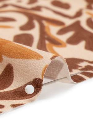 Sustainable Viscose Crepe Print – Beige, Burgundy and Orange Floral Damask – Mood Exclusive Pieces into Place