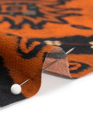 Sustainable Viscose Crepe Print – Orange and Black Floral Ogees – Mood Exclusive Salem Surroundings