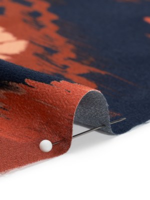 Sustainable Viscose Crepe Print – Navy, Red and Yellow Ikat Diamonds – Mood Exclusive Pressed Peonies