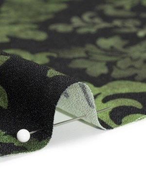 Sustainable Viscose Crepe Print – Golden Olive and Beige Floral Ogees – Mood Exclusive Salem Surroundings