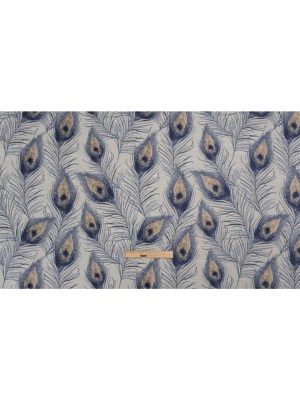 Indigo Peacock Feathers Upholstery Jacquard