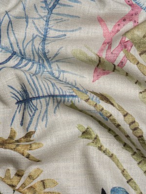 Flax, Pink and Blue Reef Exploration Slubbed Cotton Woven