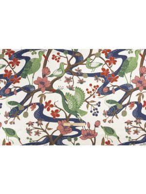 Pink, Blue and Green Birds, Blooms and Berries Slubbed Cotton Woven