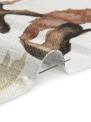 Gray, Rust and Green Pagodas and Mountains Slubbed Cotton Woven