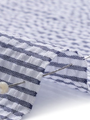 Polyester and Cotton Seersucker – Dark Blue and White Candy Stripes – Wylie Collection