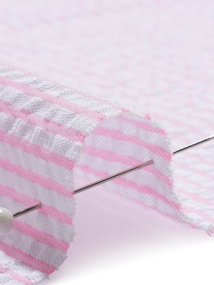 Polyester and Cotton Seersucker – Pink and White Candy Stripes – Wylie Collection