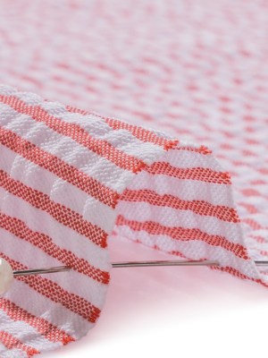 Polyester and Cotton Seersucker – Red and White Candy Stripes – Wylie Collection