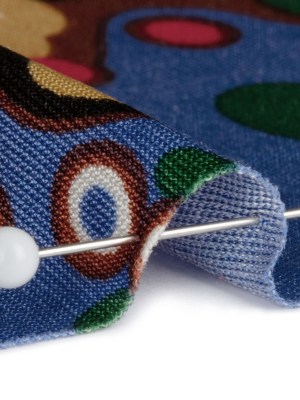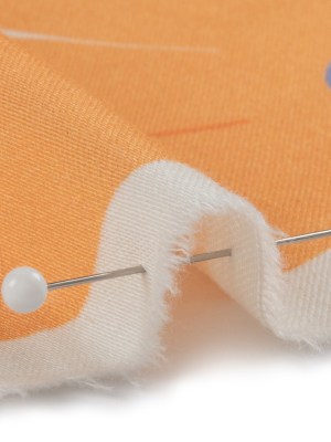 Stretch Cotton Sateen – Orange and Purple Circles – Stop The Beat Print – Mood Exclusive Yesterday Collection