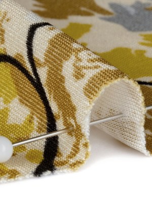 Yellow, Gold and Gray Loose Flowers and Leaves Silk Jersey