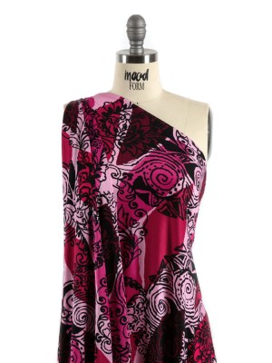 Bubblegum, Fuchsia and Wine Diamonds and Floral Outlines Silk Jersey