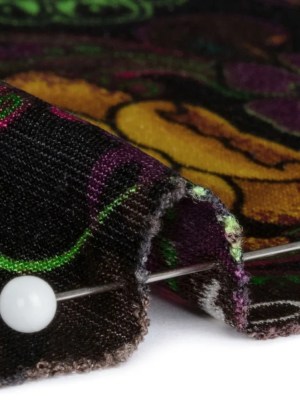 Olive, Goldenrod, and Kiwi Diamonds and Floral Outlines Silk Jersey