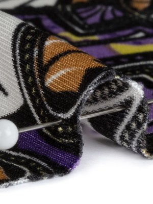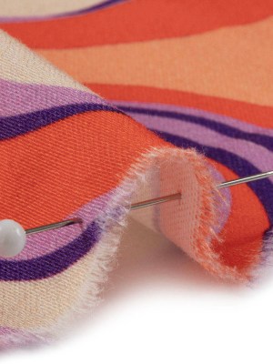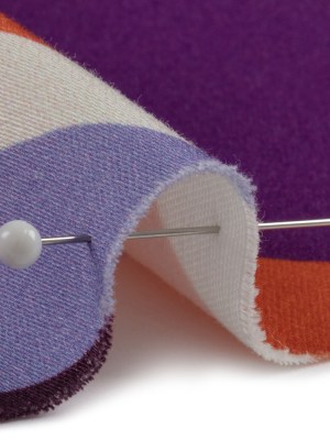 Stretch Cotton Sateen – Purple and Orange Ogees – Age of Aquarius Print – Mood Exclusive Yesterday Collection