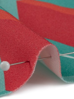 Stretch Cotton Sateen – Turquoise and Red Diamonds – Deco Delight Print – Mood Exclusive Yesterday Collection