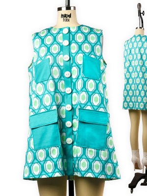 Stretch Cotton Sateen – Turquoise Honeycomb Diamonds – Arcade Fever Print – Mood Exclusive Yesterday Collection