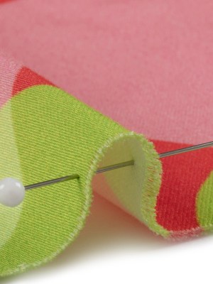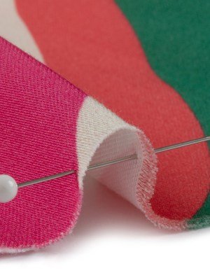 Stretch Cotton Sateen – Red, Green and Pink Ogees – Age of Aquarius Print – Mood Exclusive Yesterday Collection