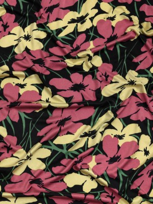 Black, Dark Rose and Yellow Floral Silk Jersey